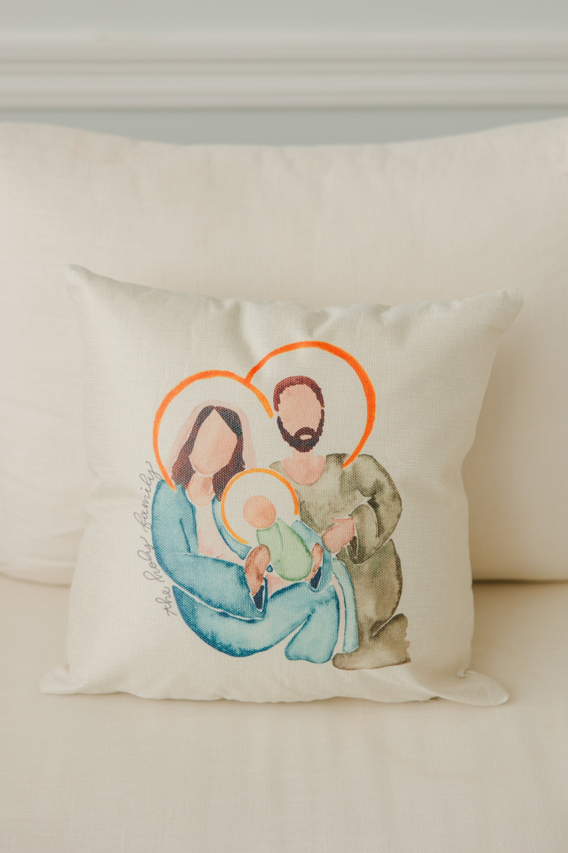 Add comfort and inspiration to your space with this 15.75" x 15.75" Holy Family Pillow. Featuring a beautiful image of Mary, Joseph, and Baby Jesus, this soft and durable pillow is perfect for bringing a touch of faith and warmth to your home décor. Ideal for sofas, beds, or prayer spaces.