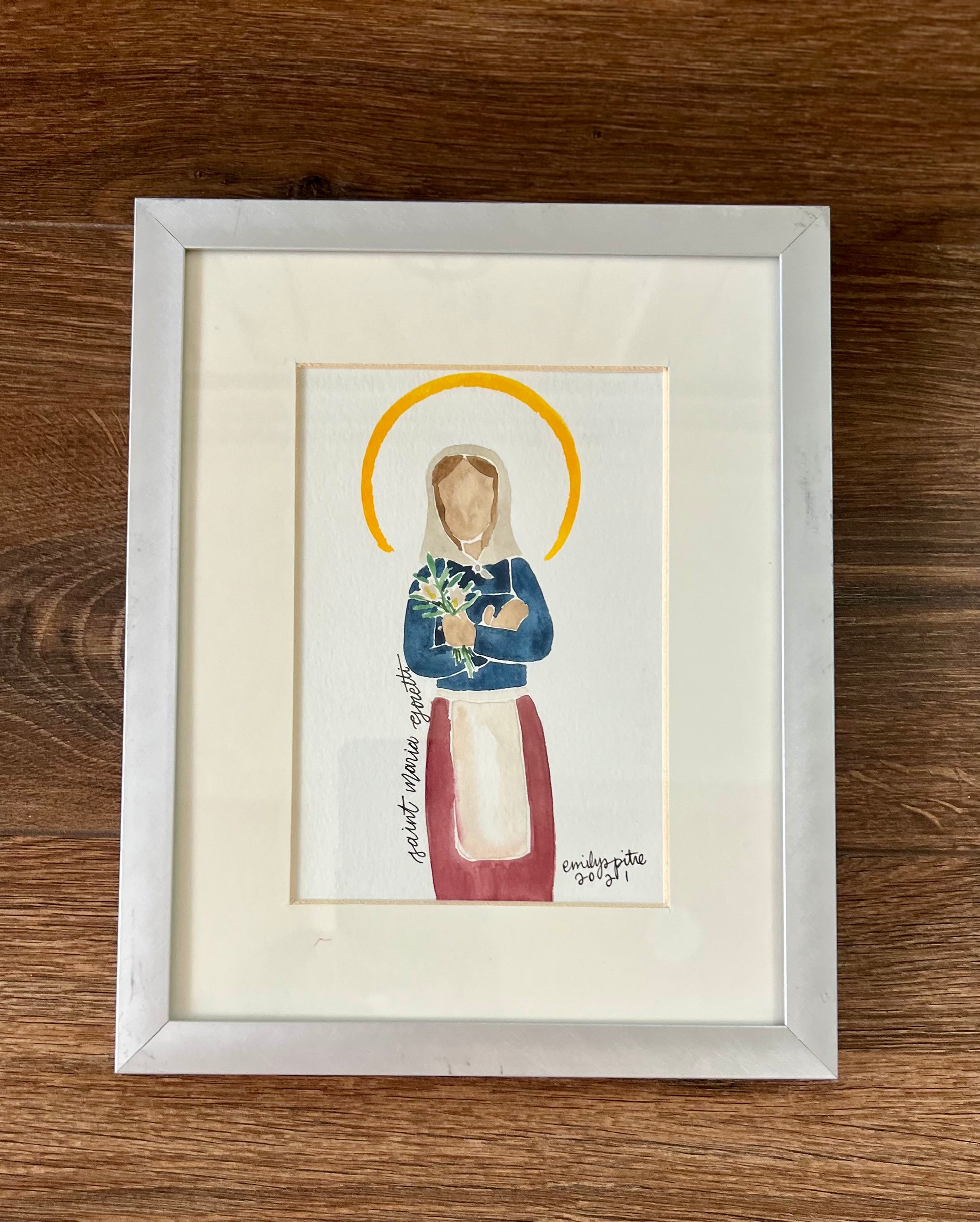 5x7 original painting of St. Maria Goretti in an 8x10 frame.