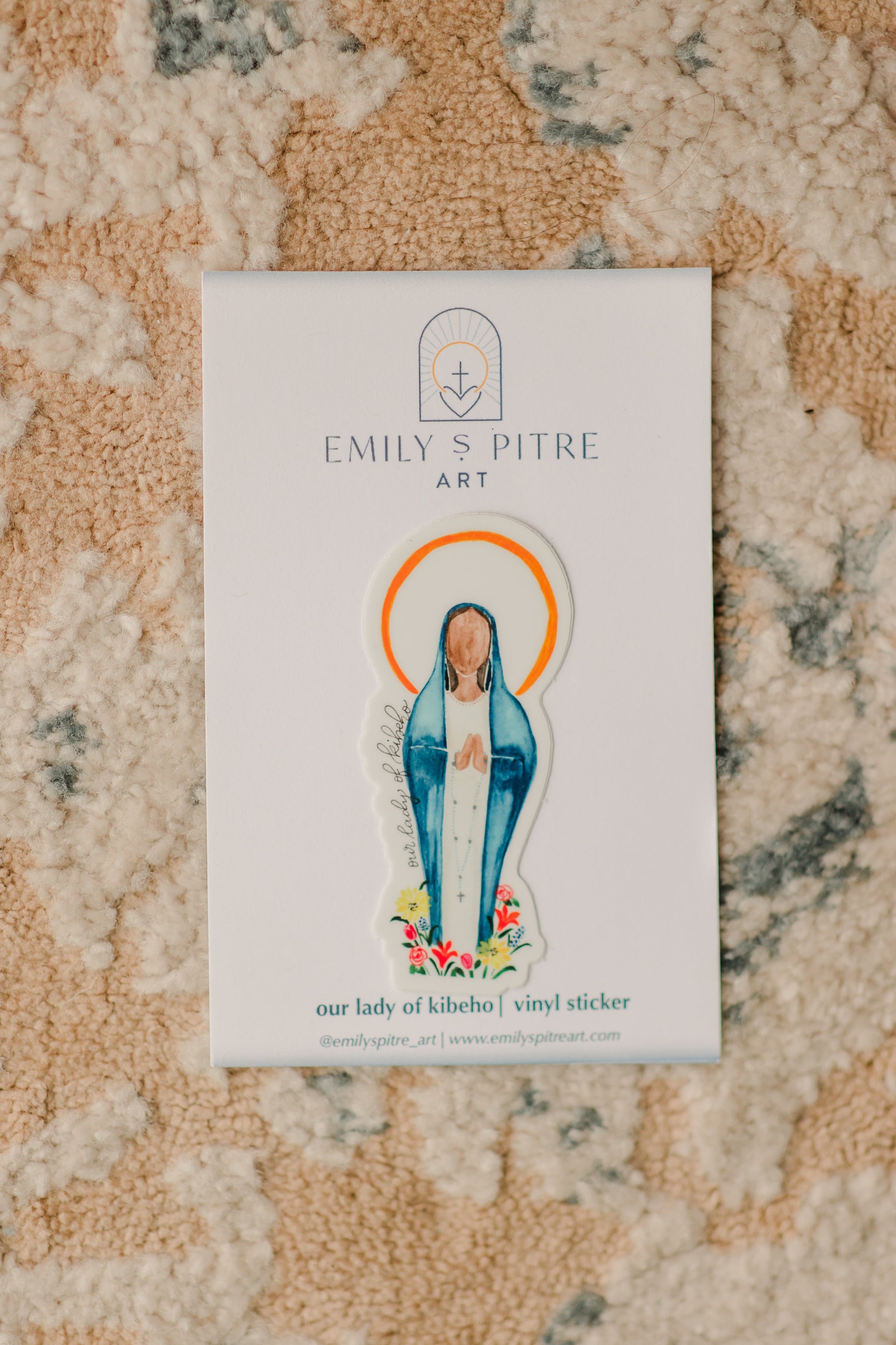 This 3-inch vinyl sticker features a beautiful image of Our Lady of Kibeho, the title given to the Blessed Virgin Mary during her approved apparitions in Rwanda beginning in 1981. She appeared to several schoolchildren with a message of repentance, prayer—especially the Rosary and the Seven Sorrows Rosary—and deep conversion of heart. She is the patroness of Africa and a messenger of hope, reconciliation, and healing for a suffering world. Made from durable, waterproof, and scratch-resistant vinyl, this sticker is perfect for water bottles, laptops, notebooks, or any smooth surface. Carry her image with you as a reminder to turn to prayer, seek peace, and trust in God’s mercy. Her Feast Day is celebrated on November 28.