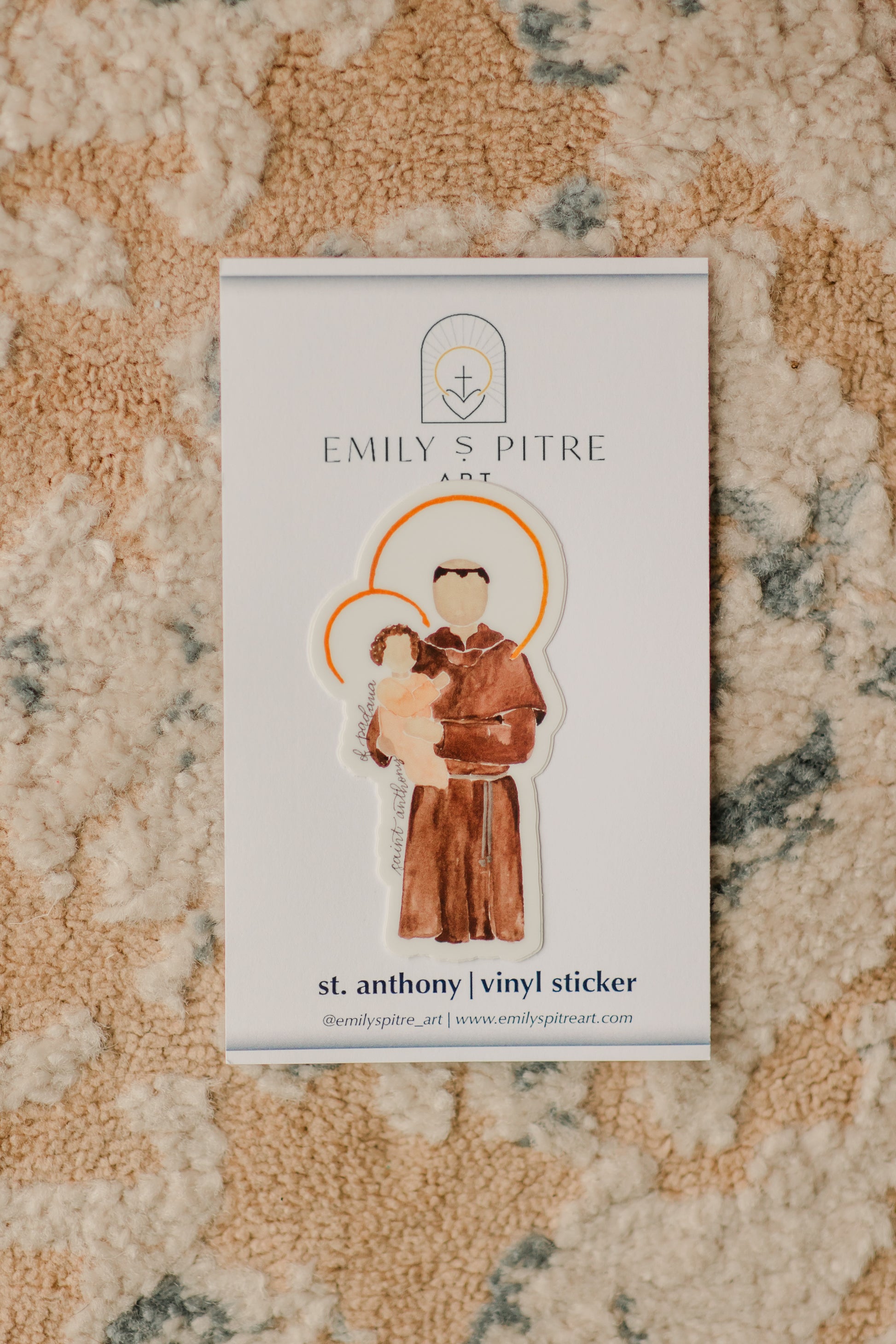 This 3-inch vinyl sticker features a beautiful image of St. Anthony of Padua, a beloved Franciscan preacher known for his powerful teaching, deep humility, and tender love for the poor and for Christ in the Eucharist. He is the patron saint of lost items, the poor, and travelers, and is often invoked for his help in finding what is lost—both physical things and faith. Made from durable, waterproof, and scratch-resistant vinyl, this sticker is perfect for water bottles, laptops, notebooks, or any smooth surface. Carry his image with you as a reminder to seek God with trust and to live a life of generosity and devotion. His Feast Day is celebrated on June 13.