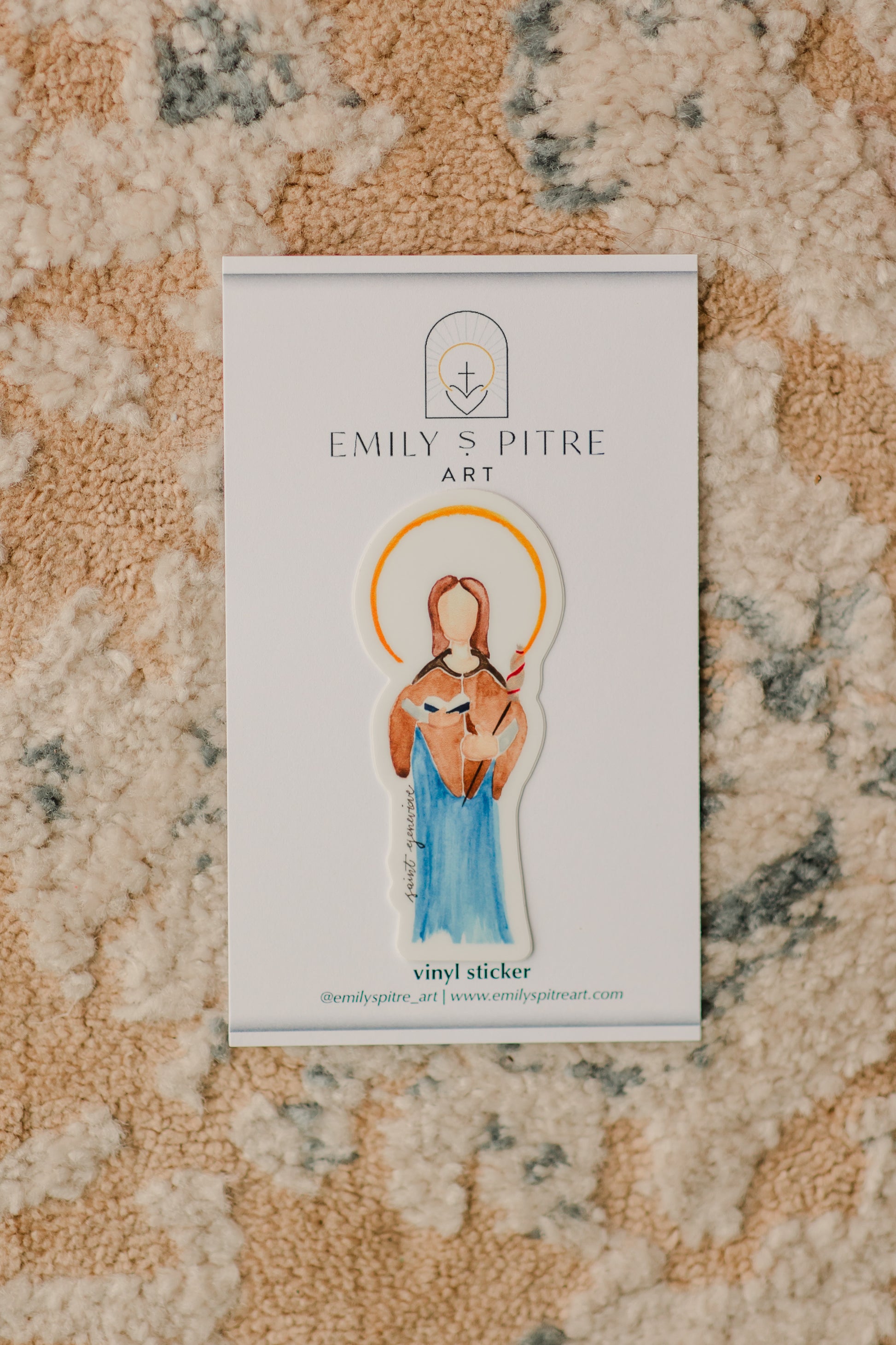 This 3-inch vinyl sticker features a beautiful image of St. Genevieve, a courageous young woman known for her deep faith, prayerful strength, and protection of Paris during times of great danger. Through fasting, prayer, and unwavering trust in God, she inspired others to remain strong in the face of invasion and hardship. She is the patron saint of Paris, disaster relief, and those facing adversity. Made from durable, waterproof, and scratch-resistant vinyl, this sticker is perfect for water bottles, laptops, notebooks, or any smooth surface. Carry her image with you as a reminder to stay faithful, courageous, and prayerful no matter the trial. Her Feast Day is celebrated on January 3.