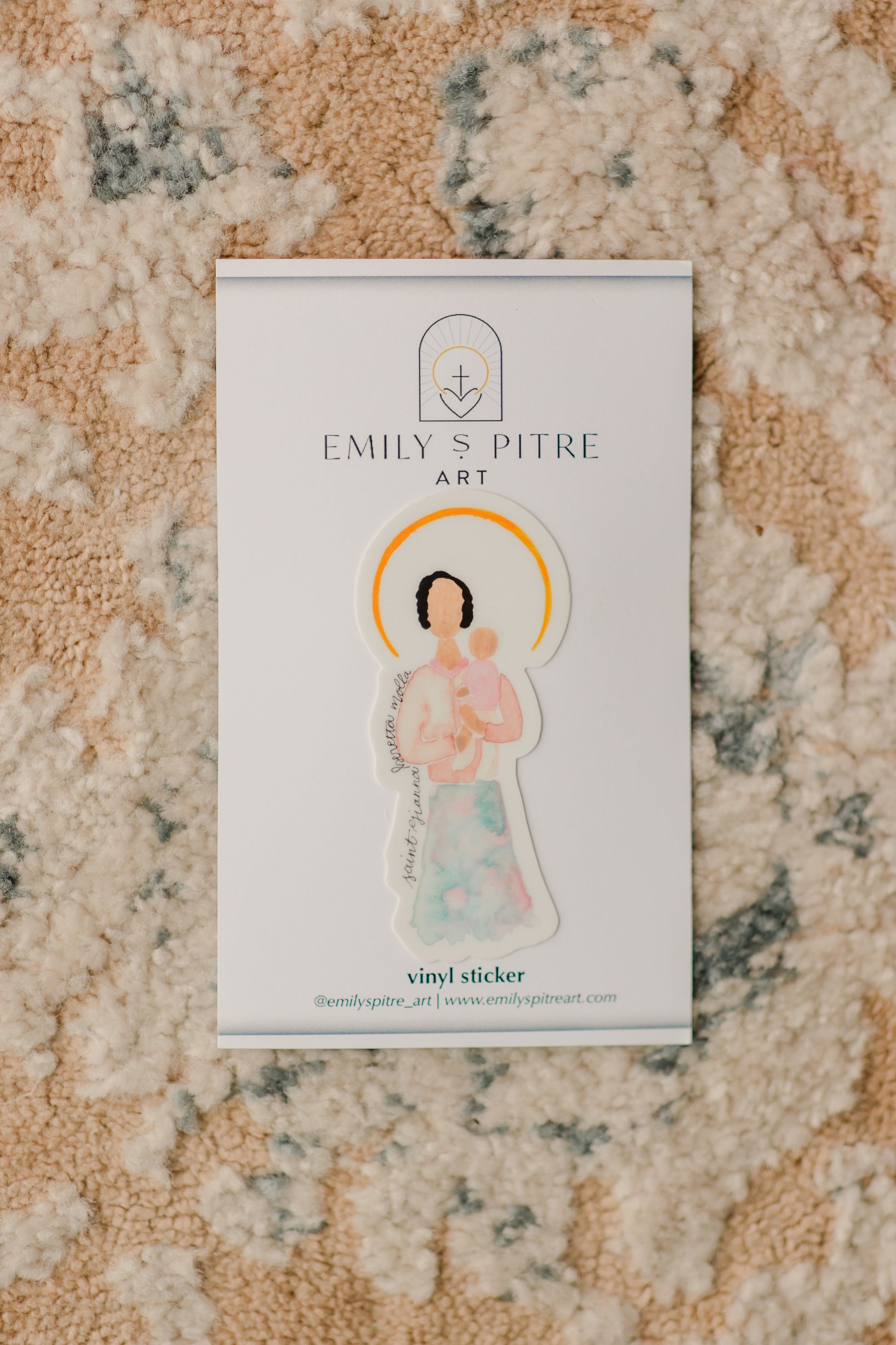 This 3-inch vinyl sticker features a beautiful image of St. Gianna Beretta Molla, a physician, wife, and mother who heroically chose to protect the life of her unborn child, even at the cost of her own. She lived out her faith through her vocation to medicine and family, embracing every moment with love and sacrifice. She is the patron saint of mothers, physicians, and the pro-life movement. Made from durable, waterproof, and scratch-resistant vinyl, this sticker is perfect for water bottles, laptops, notebooks, or any smooth surface. Carry her image with you as a reminder to love boldly, serve faithfully, and honor the dignity of every human life. Her Feast Day is celebrated on April 28.