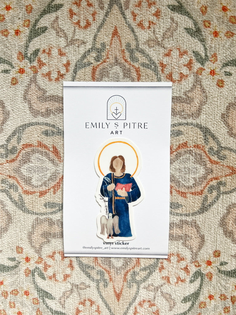 This 3-inch vinyl sticker features a beautiful image of St. John the Apostle, the beloved disciple of Jesus, Evangelist, and author of the Gospel of John, three epistles, and the Book of Revelation. Known for his closeness to Christ and profound writings on love, truth, and eternal life, he stood faithfully at the foot of the Cross and cared for the Blessed Mother. He is the patron saint of writers, theologians, and friendships. Made from durable, waterproof, and scratch-resistant vinyl, this sticker is perfect for water bottles, laptops, notebooks, or any smooth surface. Carry his image with you as a reminder to remain close to Christ, love deeply, and proclaim the truth. His Feast Day is celebrated on December 27.