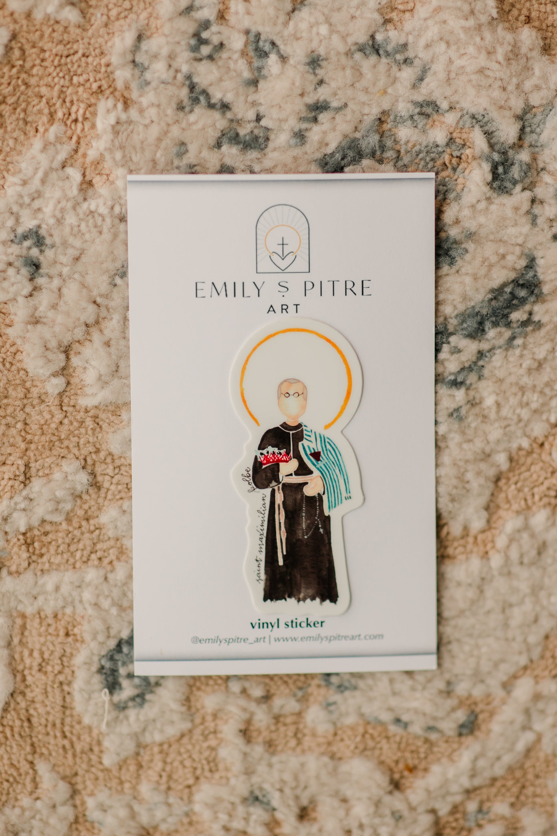 This 3-inch vinyl sticker features a powerful image of St. Maximilian Kolbe, a Franciscan priest who offered his life in place of another prisoner at Auschwitz, embodying heroic charity and sacrificial love. Deeply devoted to the Blessed Virgin Mary, he founded the Militia Immaculatae to lead souls to Christ through her. He is the patron saint of prisoners, journalists, and the pro-life movement. Made from durable, waterproof, and scratch-resistant vinyl, this sticker is perfect for water bottles, laptops, notebooks, or any smooth surface. Carry his image with you as a reminder to live courageously, love selflessly, and trust fully in Mary’s intercession. His Feast Day is celebrated on August 14.