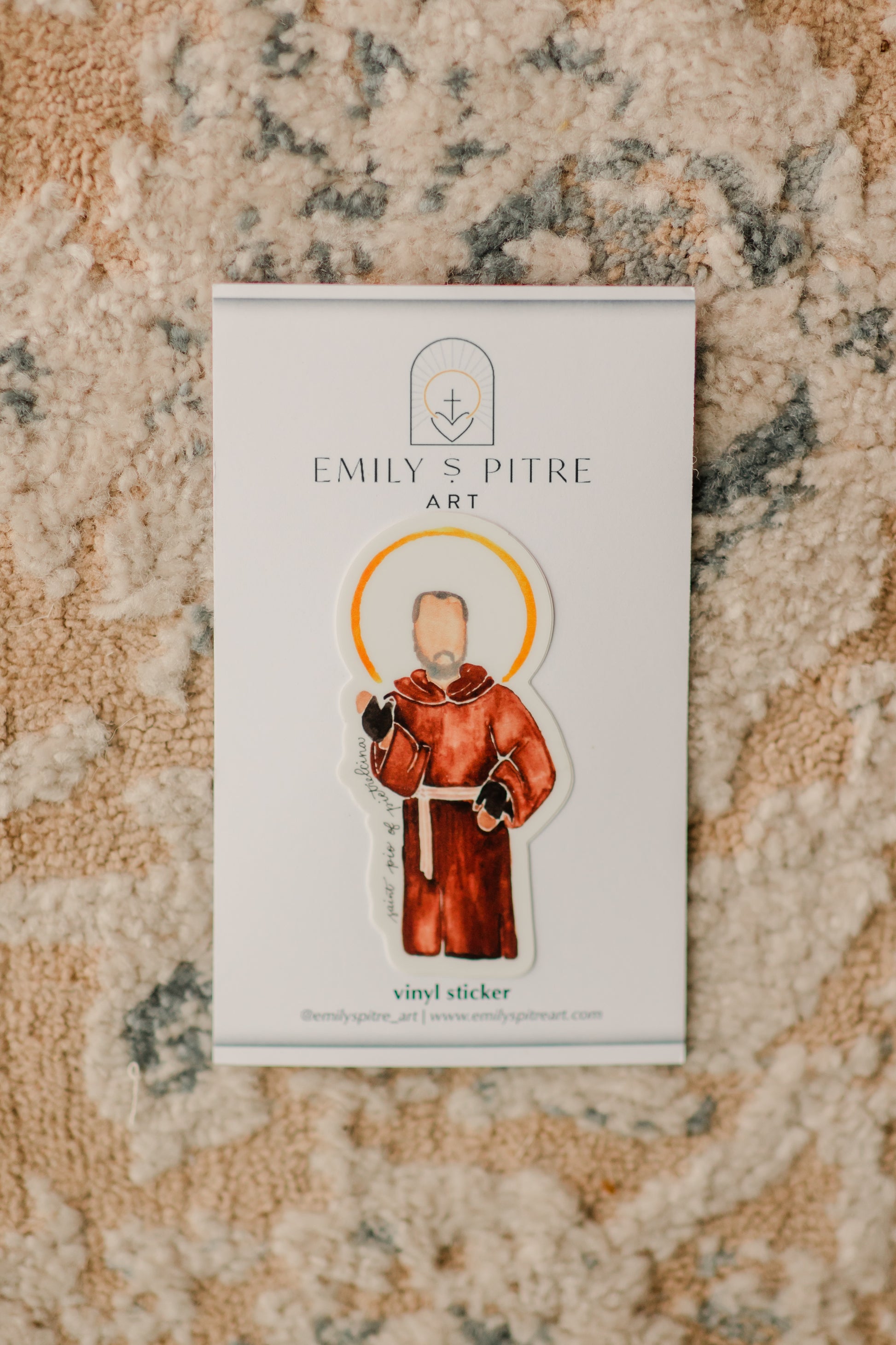 This 3-inch vinyl sticker features a powerful image of St. Pio of Pietrelcina, a Capuchin friar, mystic, and stigmatist known for his deep prayer life, spiritual wisdom, and miraculous gifts. He spent hours hearing confessions and offering guidance, drawing souls closer to Christ through humility and faith. He is the patron saint of confessors, spiritual directors, and those suffering physically or spiritually. Made from durable, waterproof, and scratch-resistant vinyl, this sticker is perfect for water bottles, laptops, notebooks, or any smooth surface. Carry his image with you as a reminder to pray deeply, suffer faithfully, and trust entirely in God's mercy. His Feast Day is celebrated on September 23.