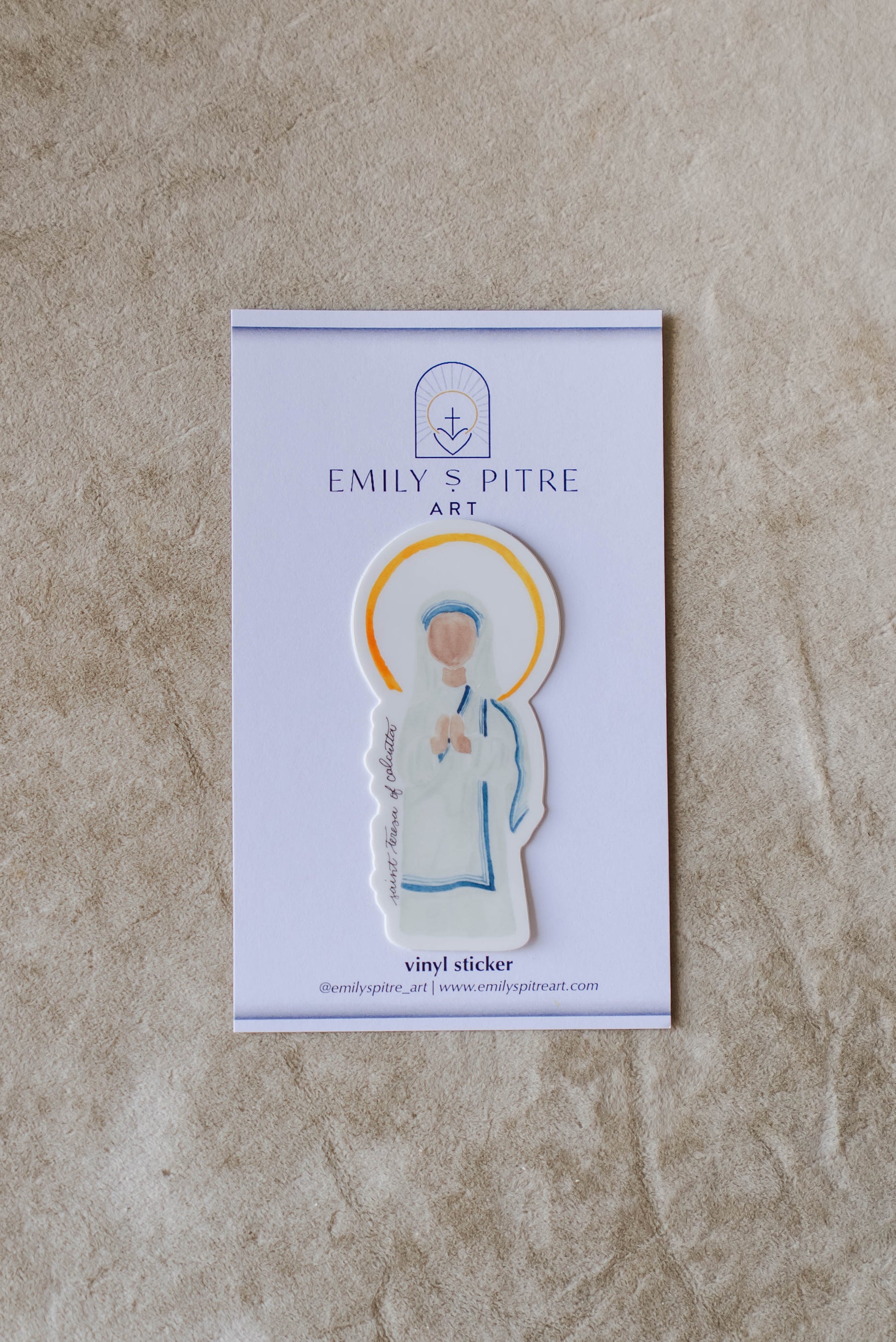 This 3-inch vinyl sticker features a beautiful image of St. Teresa of Calcutta, lovingly known as Mother Teresa, who devoted her life to serving the poorest of the poor with humility, compassion, and unwavering faith. Founder of the Missionaries of Charity, she saw Christ in every person and became a global symbol of mercy in action. She is the patron saint of the Missionaries of Charity, the poor, and those who seek to love through service. Made from durable, waterproof, and scratch-resistant vinyl, this sticker is perfect for water bottles, laptops, notebooks, or any smooth surface. Carry her image with you as a reminder to do small things with great love and to serve Christ in those most in need. Her Feast Day is celebrated on September 5.