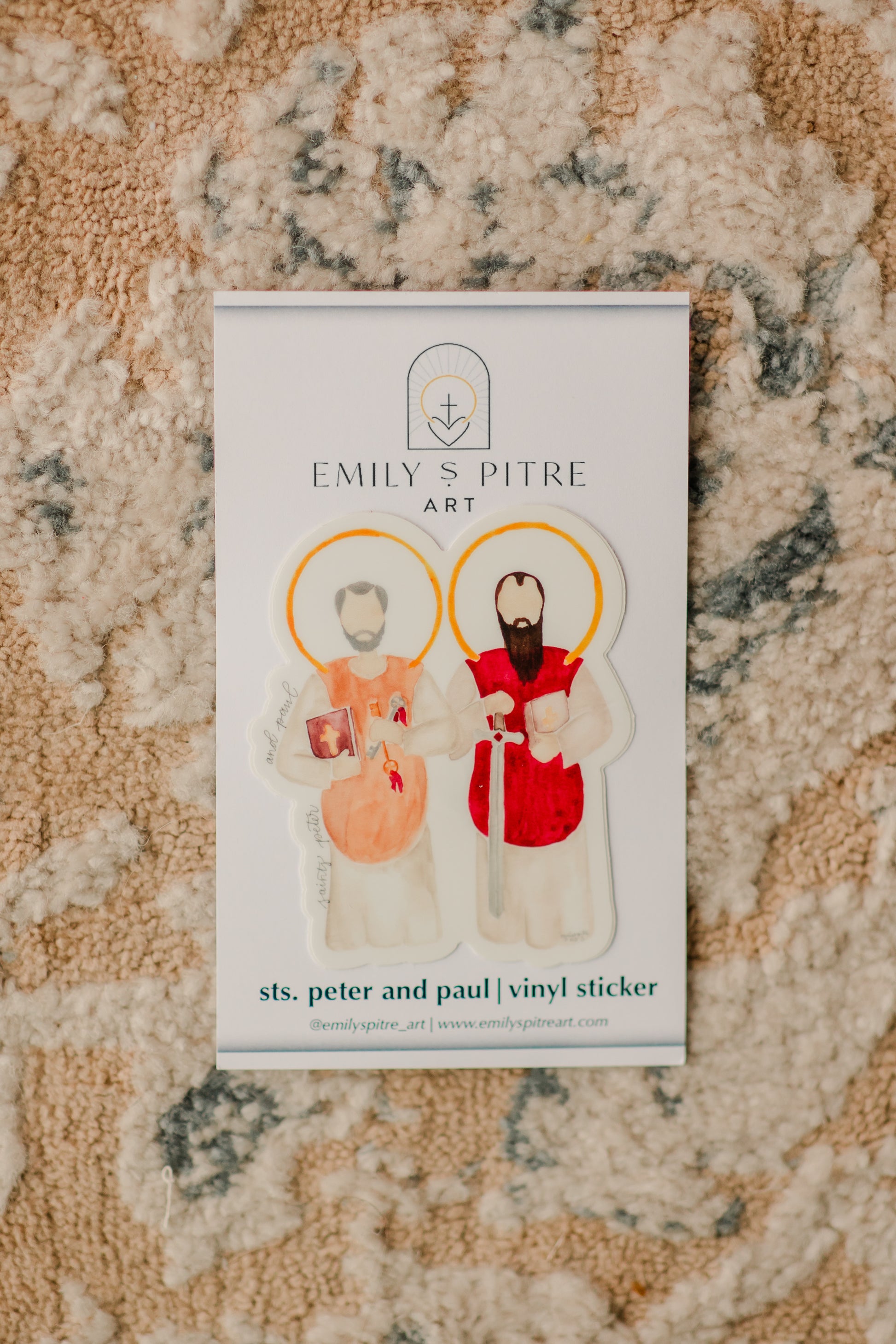 This 3-inch vinyl sticker features a powerful image of Sts. Peter and Paul, two pillars of the early Church who gave their lives proclaiming the Gospel. St. Peter, the first pope, was chosen by Christ to lead His Church, while St. Paul, a converted persecutor, became its greatest missionary and writer. Together, they represent unity and mission within the Body of Christ. They are the patron saints of Rome, the universal Church, and all who preach and lead in faith. Made from durable, waterproof, and scratch-resistant vinyl, this sticker is perfect for water bottles, laptops, notebooks, or any smooth surface. Carry their image with you as a reminder to lead with courage, proclaim Christ boldly, and remain faithful to the truth. Their shared Feast Day is celebrated on June 29.
